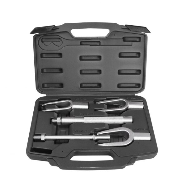 Zestaw ściągaczy do sworzni czyli do drążków kierowniczych wykonany jest z chromowanej powierzchniowo stali węglowej. Ściągacze do sworzni dostosowane są do pracy z młotkiem pneumatycznym lub ręcznym a ramiona widelców w ściągaczach posiadają twarde i równe powierzchnie klinowe, co pozwala na łatwe i precyzyjne uwolnienie zapieczonych sworzni oraz drążków kierowniczych. Ściągacze do sworzni skracają czas pracy w serwisach i warsztatach samochodowych umożliwiając obsługę samochodów osobowych i dostawczych, zarówno europejskich, amerykańskich jak również japońskich.