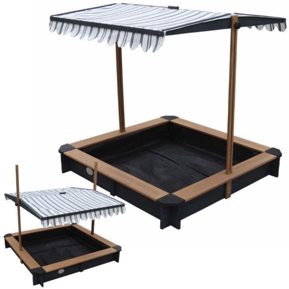Piaskownica posiada certyfikat CE i spełnia europejskie normy bezpieczeństwa EN 71 Charakterystyka: - Regulowany daszek 2w1 - wykonany z wodoodpornego poliestru (280 g/m) z ochroną UV50, który chroni dzieci przed słońcem i deszczem. Można go łatwo regulować, dostosowując kąt nachylenia, a po zakończeniu zabawy - opuścić, zamieniając go w ochronną pokrywę piaskownicy.