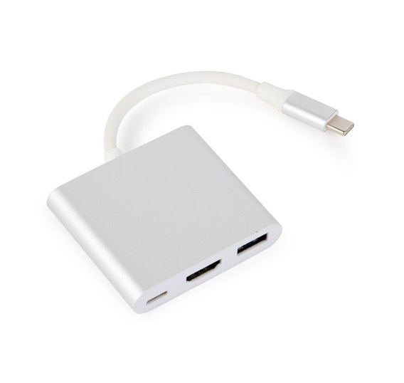 Adapter GEMBIRD A-CM-HDMIF-02-SV USB Typu C - HDMI + USB-A + USB-C