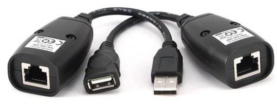 Złącza: 1x USB AM, 1x USB AF, 2x RJ45, Interfejs USB 1.1 (kompatybilny z USB 2.0), Długość przewodu adaptera: 17 cm, Współpracuje z kablami LAN kategorii 6 lub 5E, Adapter daje możliwość przedłużenia kabla USB do 30 m