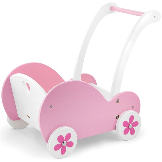 Klasyczny drewniany wózeczek dla lalek, starannie wykonany - z dbałością o każdy element. Wykonany z najwyższej jakości drewna bukowego, jest bardzo stabilny i idealnie sprawdzi się jako chodzik pchacz dla rocznej dziewczynki.