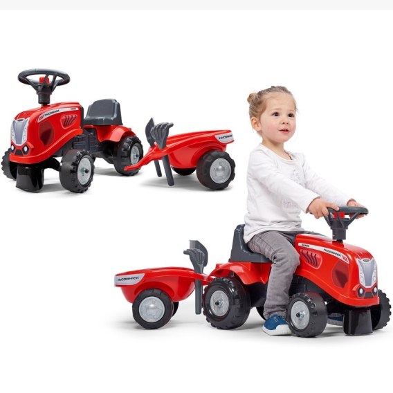FALK Traktorek Baby Mac Cormick Czerwony z Przyczepką + akc. od 12 miesięcy