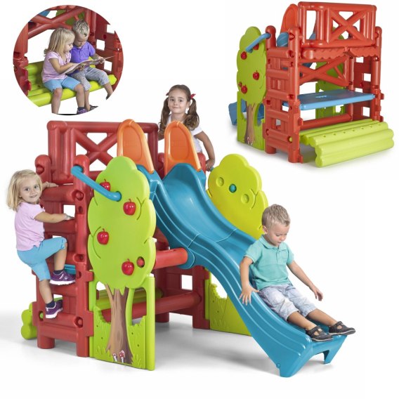Feber Plac Zabaw Ze Zjeżdżalnią i Stolikiem to kolorowy, stabilny, pełen niespodzianek plac zabaw umożliwi maluchom doznawanie sportowych emocji. Zapewni niezbędną porcję ruchu i rozwinie sprawność fizyczną przy jednoczesnym zachowaniu zasad bezpieczeństwa. Wyprodukowany na podstawie najnowszych technologii oraz najwyższych norm bezpieczeństwa. Frajda z zabawy gwarantowana!