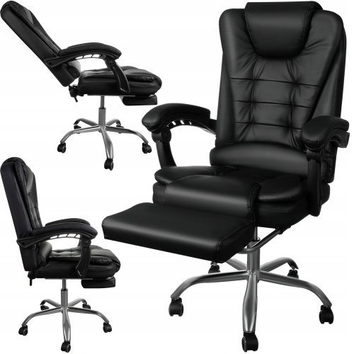 Fotel biurowy z podnóżkiem skóra eko - czarny