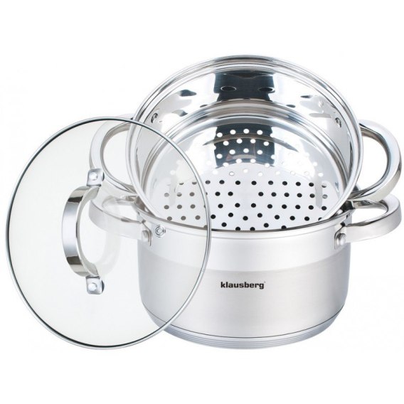3 częściowy komplet garnków do gotowania na parze KLAUSBERG bazujący na garnku 2.5L o średnicy Ø18cm.
