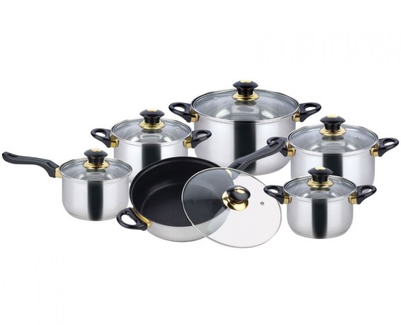 Zestaw 5 garnków i 1 patelnia ze stali nierdzewnej ze szklanymi pokrywami firmy KINGHOFF.