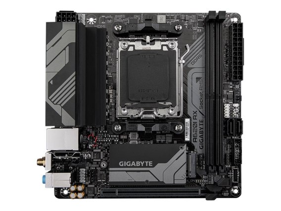 Gigabyte Gigabyte | A620I AX 1.0 | Rodzina procesorów AMD | Gniazdo procesora AM5 | DDR5 DIMM | Obsługiwane interfejsy dysków twardych SA
