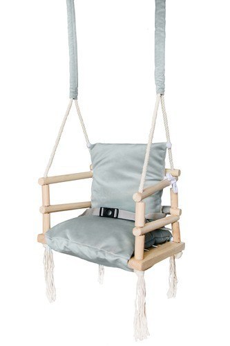 - NOWOCZESNY DESIGN - huśtawka jest wykonana z dbałością o każdy, drobny szczegół. Materiał w dotyku jest miękki, przyjemny i delikatny. Detale takie jak pomponiki przy poduszce czy sznureczki dodają huśtawce jeszcze większego uroku, doskonałe uzupełnienie stylu skandynawskiego.