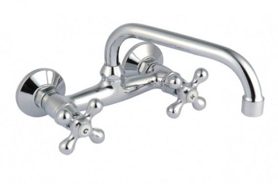 Bateria umywalkowo - zlewozmywakowa ROMA dwuuchwytowa ścienna z wylewką typu "U".