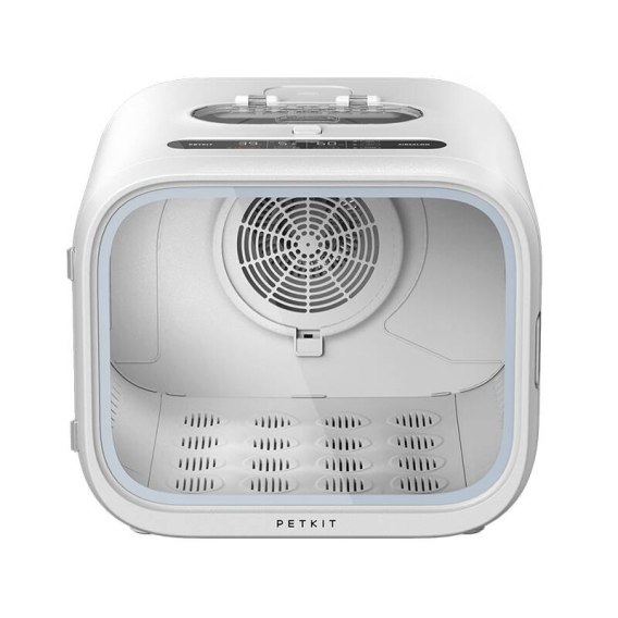 Suszarka PetKit wykorzystuje system suszenia w zakresie 360°, dla większej efektywności pracy. Ponadto umieszczony na dole falisty panel ułatwia suszenie trudno dostępnych miejsc, na przykład, łap lub brzucha. Natomiast wykorzystanie jonów ujemnych nadaje sierści blasku i działa antybakteryjnie.