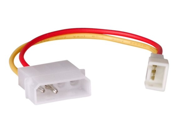 Kabel Molex. Produkt posiada z jednej strony złącze zasilania 4-pin, natomiast z drugiej złącze 3-pin.