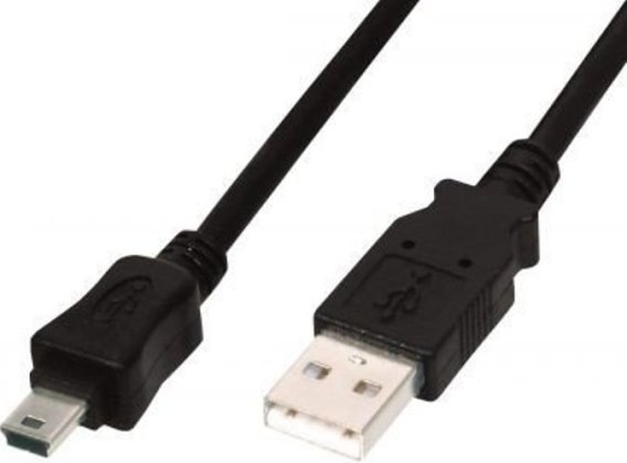Kabel połączeniowy USB 2.0 Typ USB A/miniUSB B (5pinów), męsko-męski. Kabel o długości 1m z niklowanymi złączami.