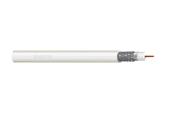 Kabel koncentryczny DIGITUS RG-6, 75 Ohm, ekran (2x folia +oplot 77%), Eca, PVC, 100m, biały