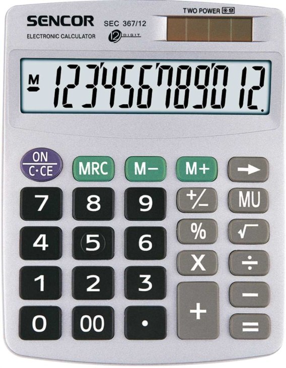 Kalkulator biurowy wyposażony w 12 pozycyjny wyświetlacz oraz podwójne zasilanie słoneczno-bateryjne. Umożliwia obliczanie pierwiastków kwadratowych oraz procentów.