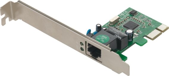 Wewnętrzna karta sieciowa na złączu PCI-Express, pracująca z prędkością 10/100/1000 Mbps.