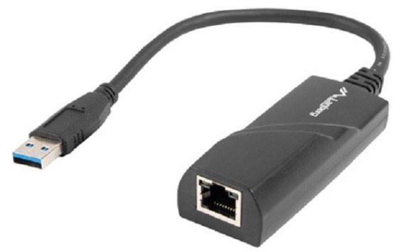 Zewnętrzna karta sieciowa pracująca z prędkością 10/100/1000 Mbps. Posiada interfejs USB 3.0 Typu A oraz złącze RJ-45.