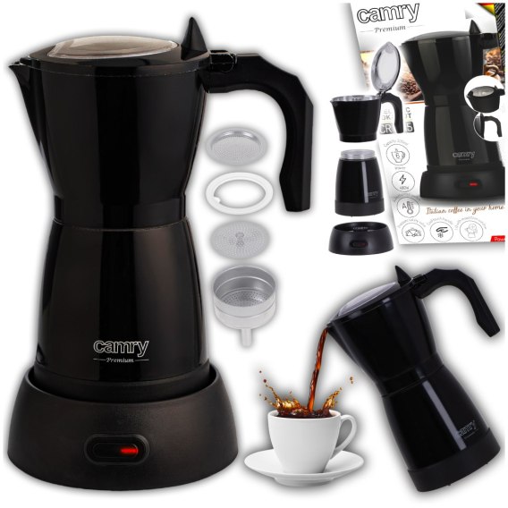 ✅ Elektryczna kawiarka typu moka CAMRY CR 4415 Black parzy do 300 ml kawy (ok. 6 espresso) bez użycia kuchenki.