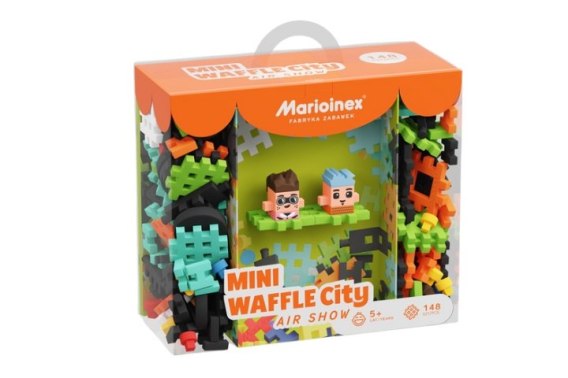 Zestaw Air Show składa się ze 148 elementów i dwóch nowych postaci, które zadbają o to, by pokaz lotniczy przebiegł bezpiecznie i sprawił wiele wrażeń widzom. Połącz zestaw z innymi z serii Waffle City i ożyw swoje miasteczko powiększając je o prawdziwy pas lotniska. Złóż zestaw według instrukcji lub uruchom wyobraźnię i skonstruuj własną, unikalną wersję! Zestaw Air Show łączy naukę logicznego myślenia przestrzennego z niepowtarzalną zabawą. Przy pomocy wyobraźni i zestawu Air Show można naprawdę odlecieć!