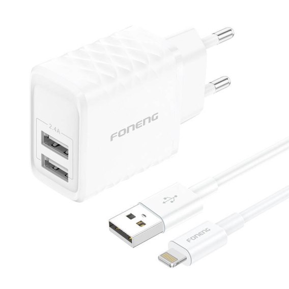 Ładowarka sieciowa Foneng EU53 2xUSB-A, 2,4A (Biała) + kabel USB-A do Lightning
