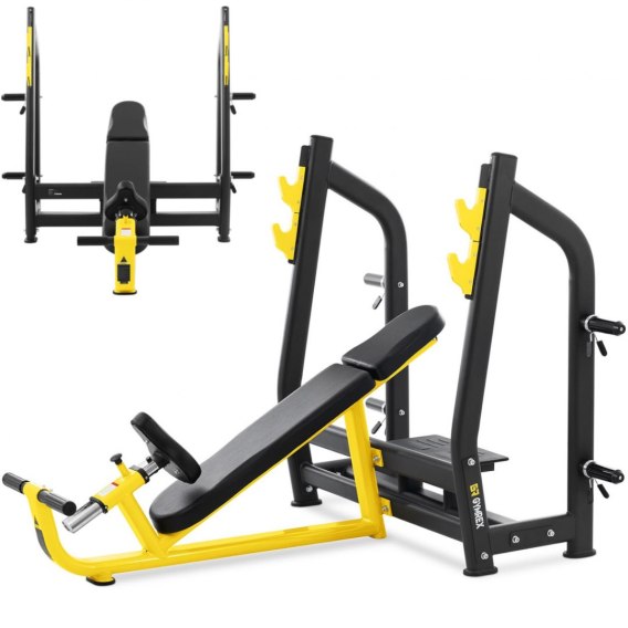 Ławka ławeczka treningowa skośna pod sztangę do wyciskania głową w górę czarno-żółta