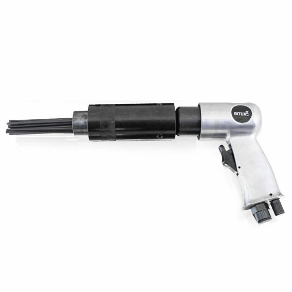 Profesjonalny, pneumatyczny młotek igłowy niezastąpiony w większości prac związanych z obróbką metalu. Młotek igłowy przeznaczony do ciągłej, wymagającej pracy, do usuwania rdzy, kamienia kotłowego, zgorzelin, nagarów, starych powłok lakierniczych z powierzchni metalowych. Dziewiętnaście niezależnie poruszających się igieł umożliwia dotarcie w trudno dostępne miejsca dostosowując się do obiektów zniekształconych i nieregularnych, czyszcząc obrabiany materiał w klika sekund.