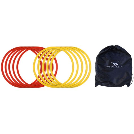 Pierścienie koordynacyjne Yakima idealne na trening koordynacji, ćwiczenia biegowe oraz do zabawy dla dzieci. Wykonane z tworzywa sztucznego. Zapakowane w wygodny pokrowiec. Intensywna barwa będzie dobrze widoczna na każdym podłożu.