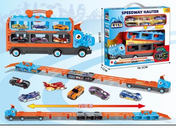 ND21_110488 Samochód wyrzutnia DINO + 6 małych aut
