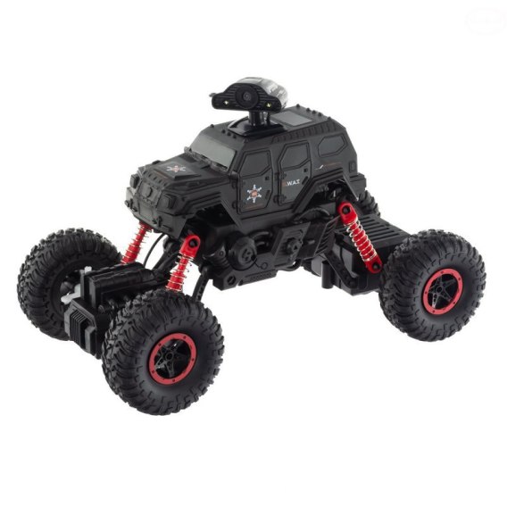 Zdalnie sterowny samochód. Zabawka posiada napęd na tylną oś oraz skrętne koła. Pojazd posiada duże gumowe koła oraz sprężynowe zawieszenie. Pilot zdalnego sterowania pozwala operować pojazdem w kierunkach przód-tył oraz prawo-lewo. Górna wieżyczka posiada oświetlenie. Pojazd posiada podświetlaną wieżyczkę. W zestawie znajduje się ładowarka oraz akumulator.