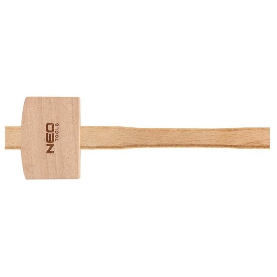 Młotek drewniany NEO (nr ref. 25-076) przeznaczony jest przede wszystkim do podbijania innych narzędzi, takich jak dłuto, przecinak. Obuch wykonany z twardego drewna, prostokątny, rękojeść dobrze dopasowuje się do dłoni. Drewno zabezpieczone przed pochłanianiem wilgoci, dzięki czemu narzędzie jest lekkie, co zapewnia komfort pracy. Marka NEO spełnia oczekiwania profesjonalistów.