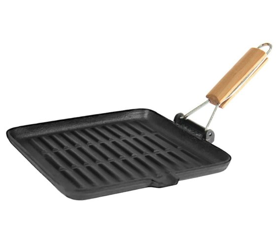 Ciężka żeliwna patelnia grillowa ze składaną rączką o wymiarach 24 x 24cm