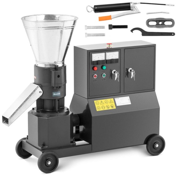 Profesjonalna peleciarka przemysłowa marki Wiesenfield służy do produkcji pelletu, paszy dla zwierząt i granulatu z różnych materiałów organicznych. Granulator daje możliwość wykorzystania drewnianych trocin, słomy, łupin orzechów, łusek ryżowych czy papieru. Są one umieszczane wspecjalnej matrycy z otworami ośrednicy 6 mm, gdzie poddaje się je działaniu wysokiego ciśnienia itemperatury (60-80°C). Część materiałów wymaga użycia specjalnych spoiw. Peleciarka jest w stanie wytworzyć 200-300 kg paszy oraz110-140 kg pelletu z trocin w ciągu godziny. Nad ochroną użytkownika czuwa specjalny hamulec bezpieczeństwa. 4 kółka zapewniająmobilność maszyny oraz ułatwiają transportowanie.