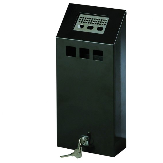 Popielniczka naścienna z wyjmowanym pojemnikiem zamykana na klucz czarna 1.5L