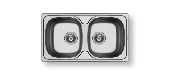 Pyramis E78 2B 100138801 (78 x 43,5 cm) Zlewozmywak stalowy gładki polerowany, 2 komory, srebrny