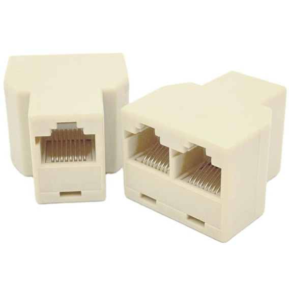 Rozgałęziacz z jednego na dwa gniazda RJ45-RJ45. Umożliwia rozgałęzienie gniazda RJ45 na dwa kolejne. Każdy pin pojedynczego gniazda RJ45 zostaje rozgałęziony na dwa. Tanie i praktyczne rozwiązanie w przypadku chęci podłączenia większej ilości kabli sieciowych.