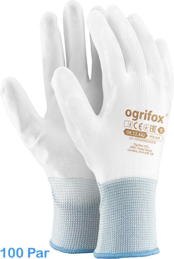 Rękawice robocze / Białe / OX-POLIUR_WW - 100 par (7 - S)