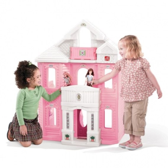 DOMEK DLA LALEK Duży, przestronny domek dla lalek typu Barbie (wysokość 117cm) zapewni zabawę dla kilku dzieci równocześnie. Posiada trzy piętra, na parterze duże frontowe drzwi, przez które wchodzi się do salonu oraz kuchni, schody prowadzące na piętro do sypalnii z tarasem oraz poddasze z balkonem. Realistyczne odzwierciedlenie detali i kolorów sprawia, że kącik perfekcyjnie dopasowuje się do wnętrza sali zabaw jak i dziewczęcego pokoju. Lalki i meble nie są zawarte w zestawie. Wiek: 3+ Wymiary: 117x56x81 Waga: 16 kg