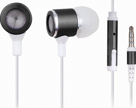 Słuchawki douszne z mikrofonem na przewodzie i kablem o długości 0.9 m. Zakres częstotliwości słuchawek 50-18000 Hz. Posiadają wtyk 3.5 mm i oferują możliwość regulacji głośności.