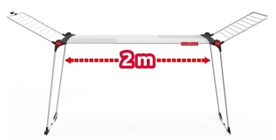 Stelaż stalowy, Teleskopowe linki regulowane do 2 m długości, Nogi zakończone obudowanymi kółkami, Wieszak na drobną bieliznę, Linki aluminium powlekane