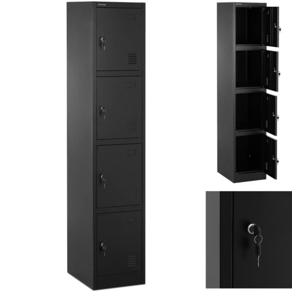 Szafka skrytkowa marki Fromm & Starck sprawdzi się w szatniach czy pomieszczeniach socjalnych do przechowywania osobistych rzeczy. Solidna konstrukcja wykonana została ze stali i pokryta żywicą epoksydową. Znosi obciążenie do 80 kg. 4 oddzielne skrytki zamykane są na klucze dla ochrony przed nieupoważnionym dostępem. Każda skrytka zawiera wieszak na ubranie i półkę. Otwory wentylacyjne zapewniają optymalną cyrkulację powietrza.