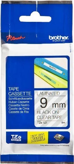 Taśma laminowana o szerokości 9mm, czarnym nadruku oraz przezroczystym tle. Długość taśmy wynosi 8 metrów.