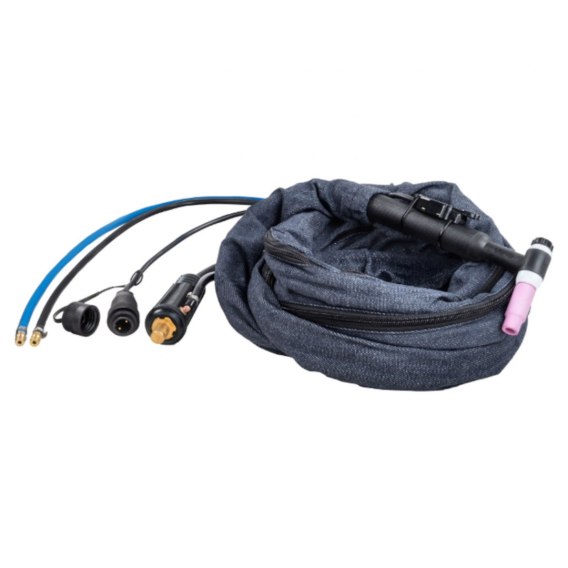 Uchwyt spawalniczy TIG z zapasowymi akcesoriami i przewodem o długości 4 metrów.