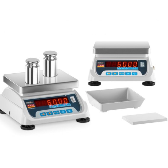 Sprzęt marki TEM wyposażony jest w wygodny i intuicyjny panel sterowniczy - klawiatura membranowa z czytelnymi symbolami, wyświetlacz LED, kontrolki sygnalizujące wybrane ustawienie i sygnały dźwiękowe informujące o uruchomieniu jednej z funkcji. Ponadto w zestawie znajduje się dodatkowy trzylitrowy pojemnik o wysokości 5 cm, dzięki któremu możemy zważyć więcej towarów w bezpieczny sposób oraz dodatkowa wymienna platforma.