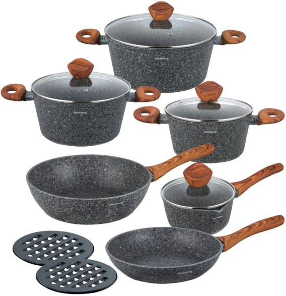 • ZESTAW 12 ELEM. GARNKÓW GRANITOWYCH KLAUSBERG KB-7242 GRANIT WOOD