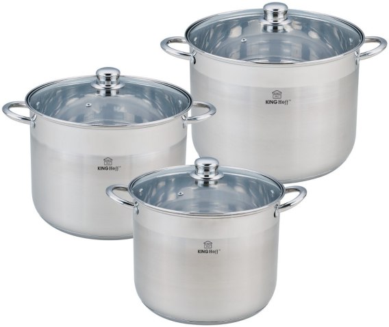 Zestaw 3 garnków wykonanych z wysokiej jakości stali nierdzewnej.