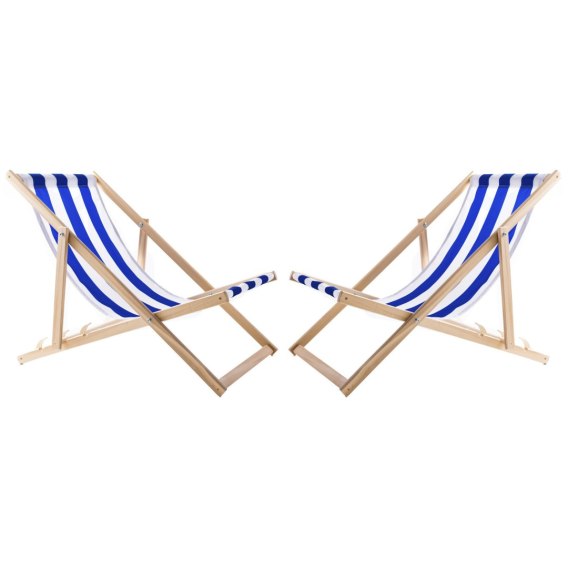 Zestaw 2 lezaków, niebieskie pasy, zmontowany, Woodok