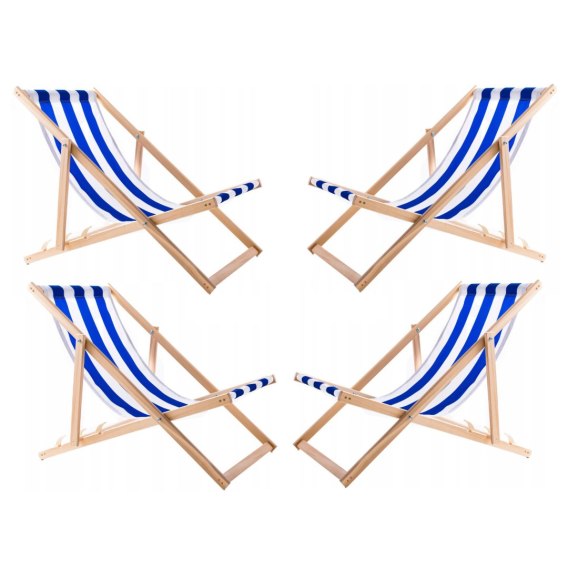Zestaw 4 lezaków, niebieskie pasy, zmontowane, woodok
