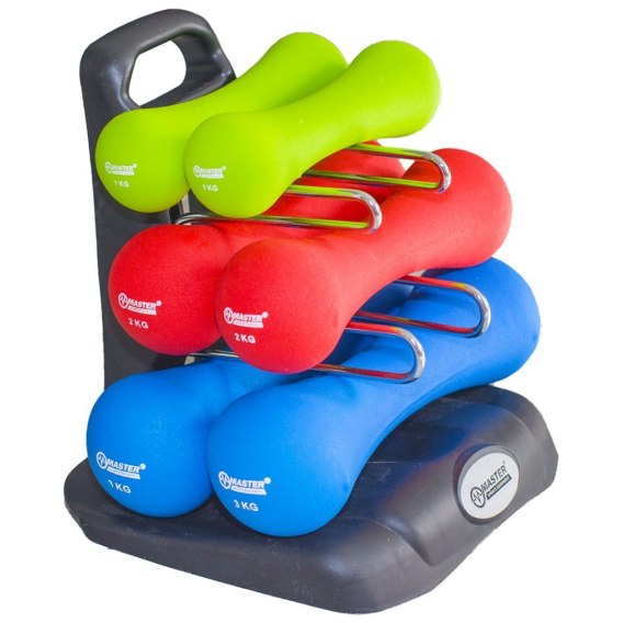 Hantelki wykonane są z metalowego rdzenia pokrytego przyjemnym w dotyku neoprenem. Występują w wadze 1, 2, 3 kg - po 2 sztuki. Ergonomiczny kształt oraz trwałość zewnętrznej powłoki, gwarantują duży komfort podczas ćwiczeń, jak również ułatwiają utrzymanie go w czystości.