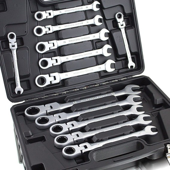 Zestaw kluczy składa się z 12 sztuk kluczy zapadkowych z przegubowymi głowicami, które umożliwiają pracę w trudno dostępnych miejscach. Narzędzia wykonane są z najwyższej jakości stali, dzięki czemu posłużą na długie lata. Dodatkowo wyposażenie obejmuje praktyczną walizkę, która ułatwi transport narzędzi oraz ich przechowywanie.