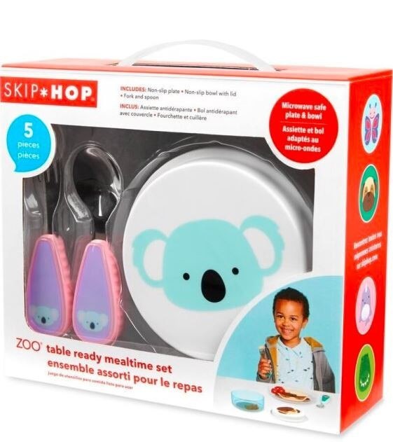 Zachęć malucha do niezależności w karmieniu (i zajmij miejsce przy dużym dziecięcym stole!) dzięki naszym uroczym zestawom startowym do posiłków. Każdy zestaw zawiera charakterystyczne postacie ZOO, talerz i miskę z antypoślizgowym spodem, a także pasujący widelec i łyżkę. Poręczna pokrywka miski pomaga zachować świeżość ulubionych potraw, a przybory ze stali nierdzewnej mają łatwe do uchwycenia boki, dzięki czemu małe dłonie mogą je mocno trzymać.